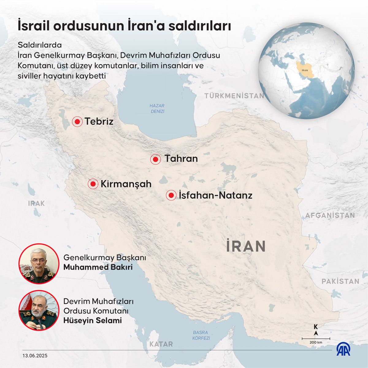 İsrail, sabaha karşı İran’ın başşehri Tahran, Tebriz, İsfahan’da bağlı Natanz bölgesindeki nükleer tesis ile Loristan, Kirmanşah, Şiraz, Huzistan, Hemedan ve Kum kentlerine hücumlar düzenlemişti.