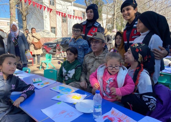Deprem sonrası bölgedeki çocukların yüzlerini güldürmek için misyon yapan jandarma çalışanı ve bayan astsubaylar, çocukları psikososyal taraftan desteklemeye devam ediyor.