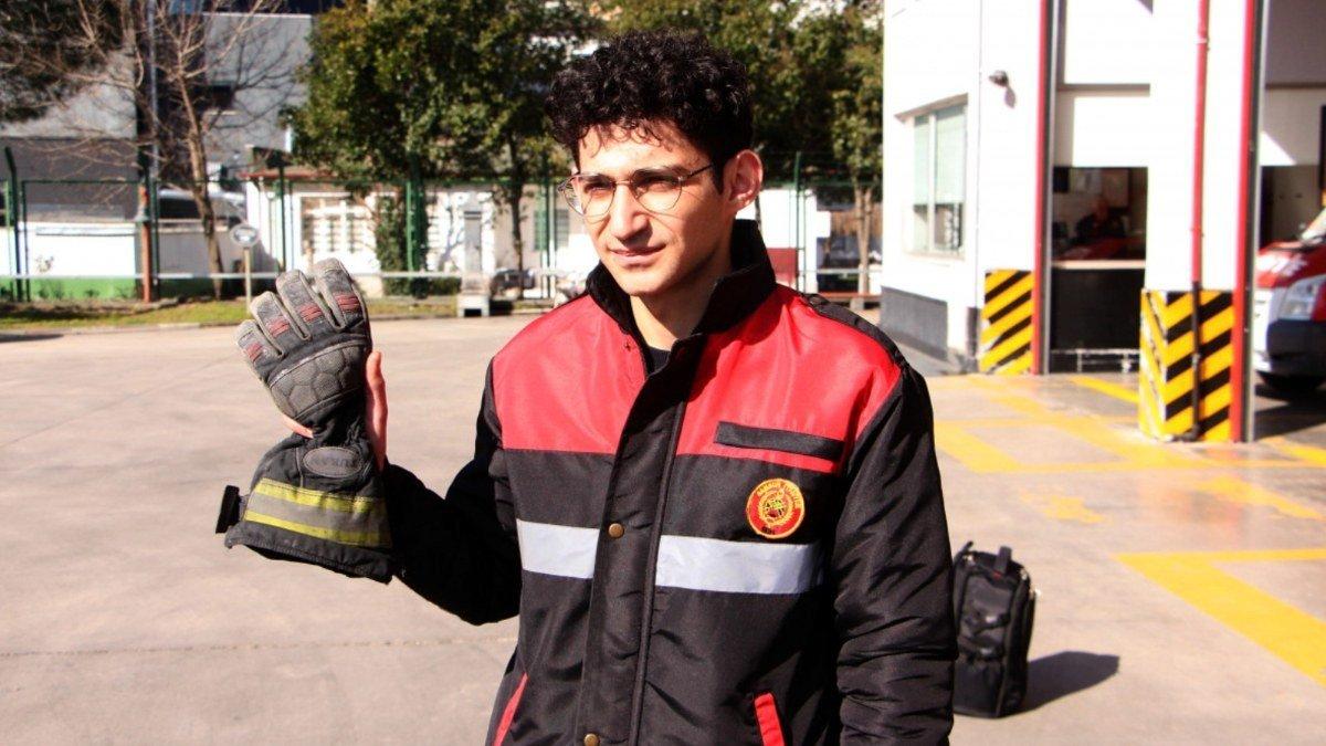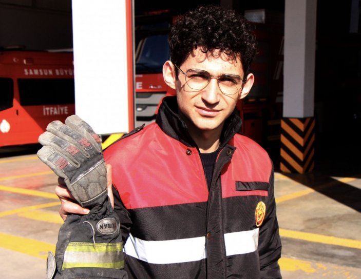 Samsunlu itfaiyeci elini bırakmayan depremzedeye eldivenini bıraktı